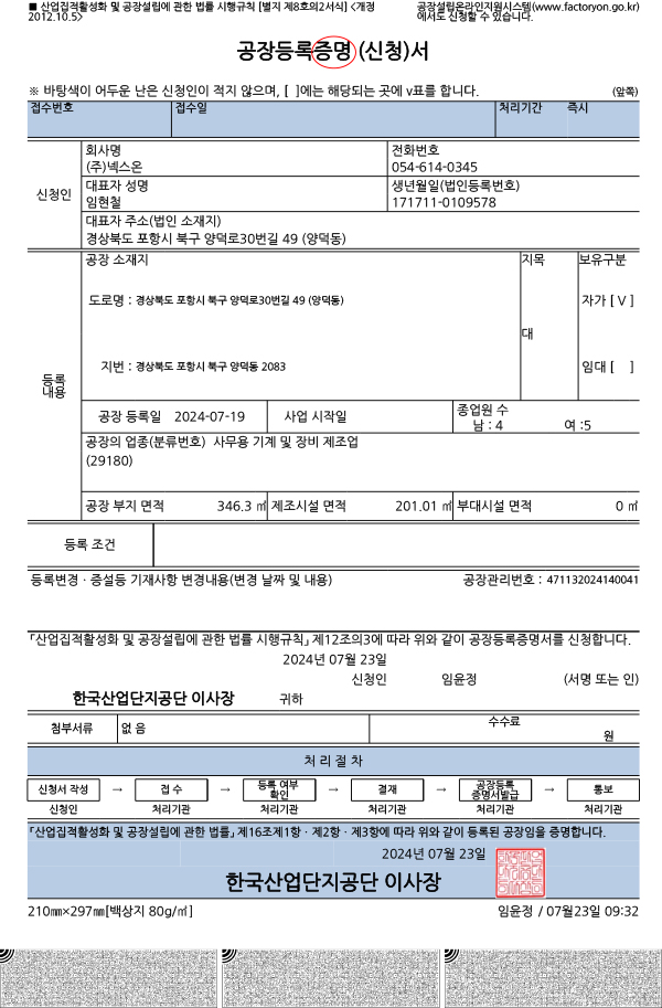 공장등록증명서