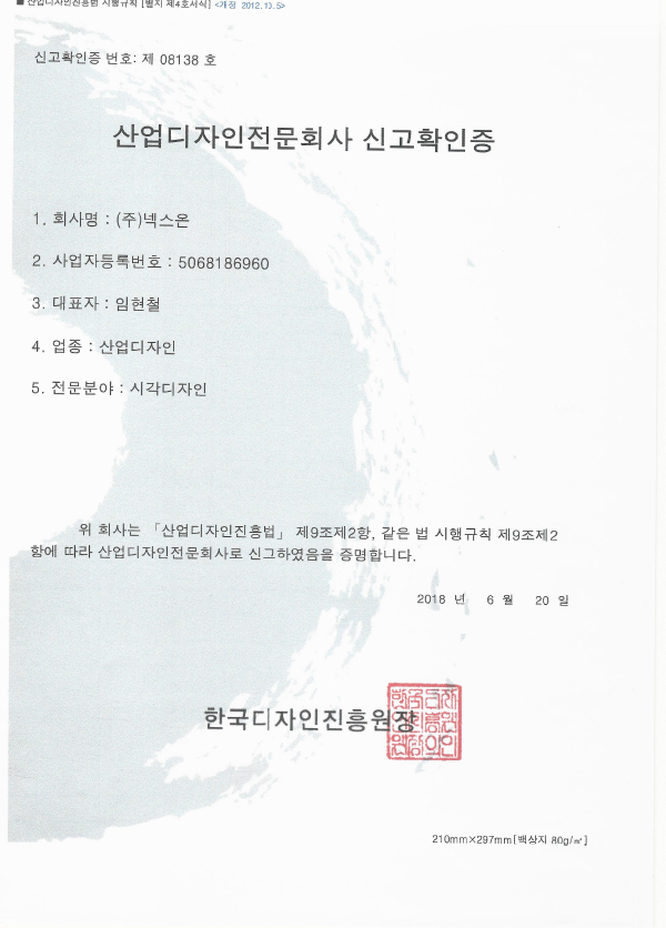 산업디자인전문회사 신고확인증