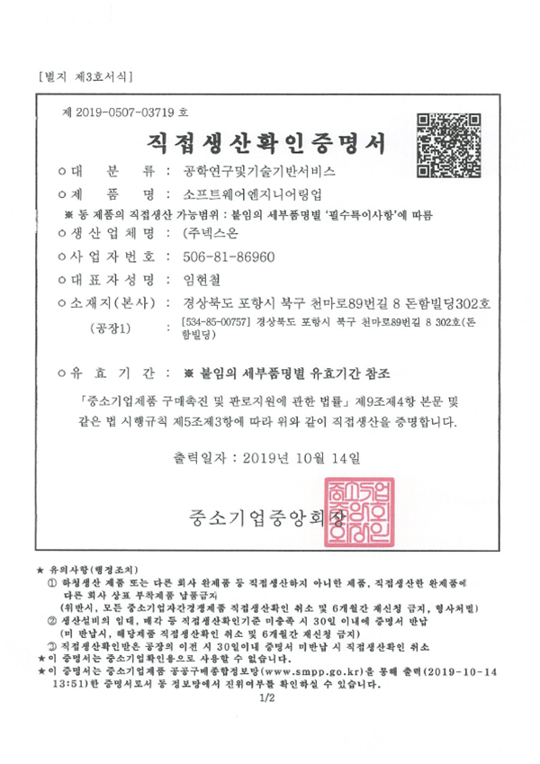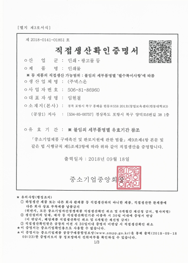 직접생산확인증명서